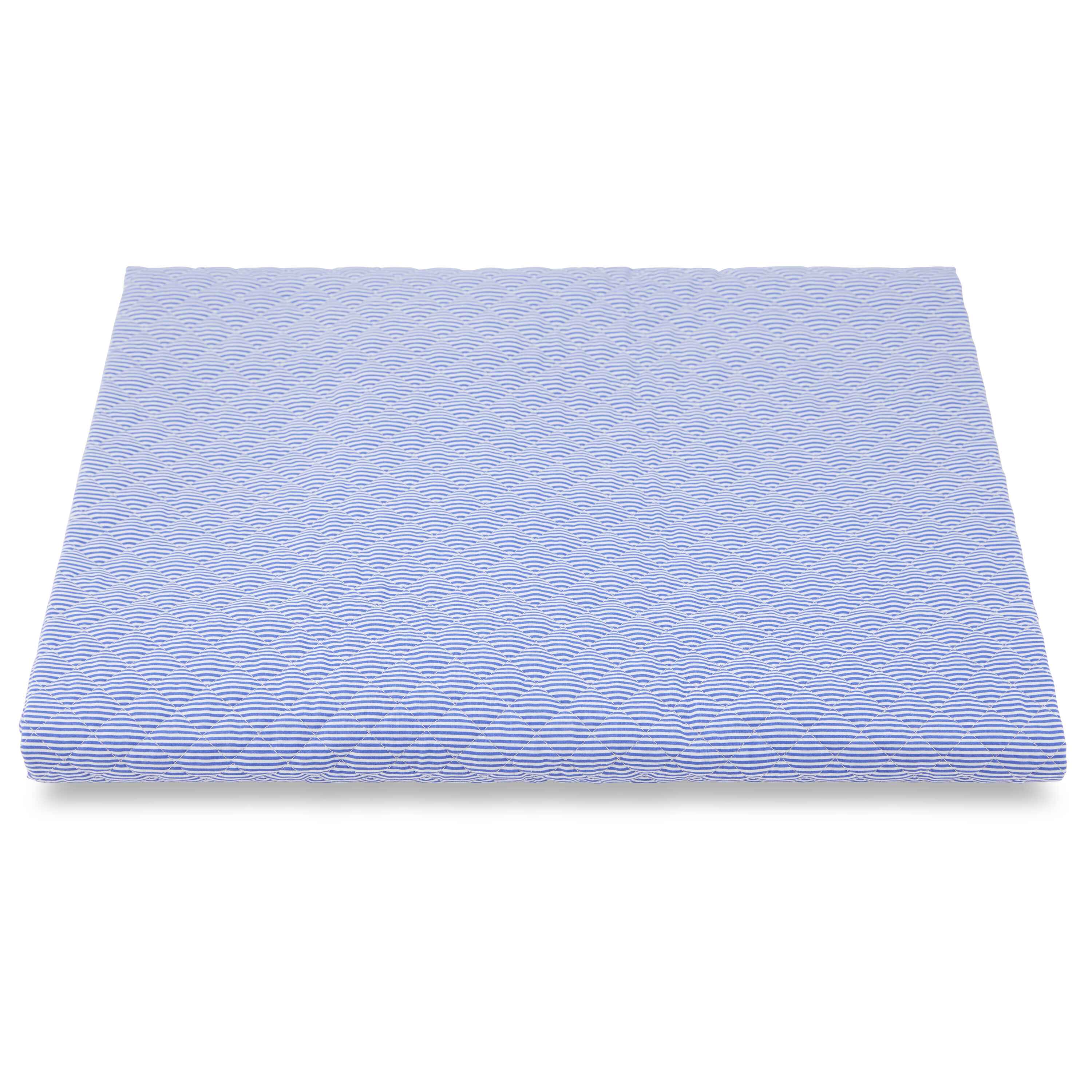 This dark blue striped coverlet, crafted from 100% Egyptian king staple mercerized sateen cotton, adds a luxurious and timeless touch to your baby’s crib. Made in Italy with exceptional quality, it offers a soft, smooth feel. Designed for gentle care—hand wash cold, air dry.