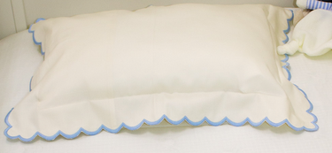 Embroidered Scallop Pillowcase - Light Blue