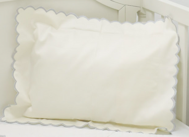 Enhance your nursery with this embroidered scallop pillowcase, offering a blend of luxury, comfort, and sophisticated nursery style.